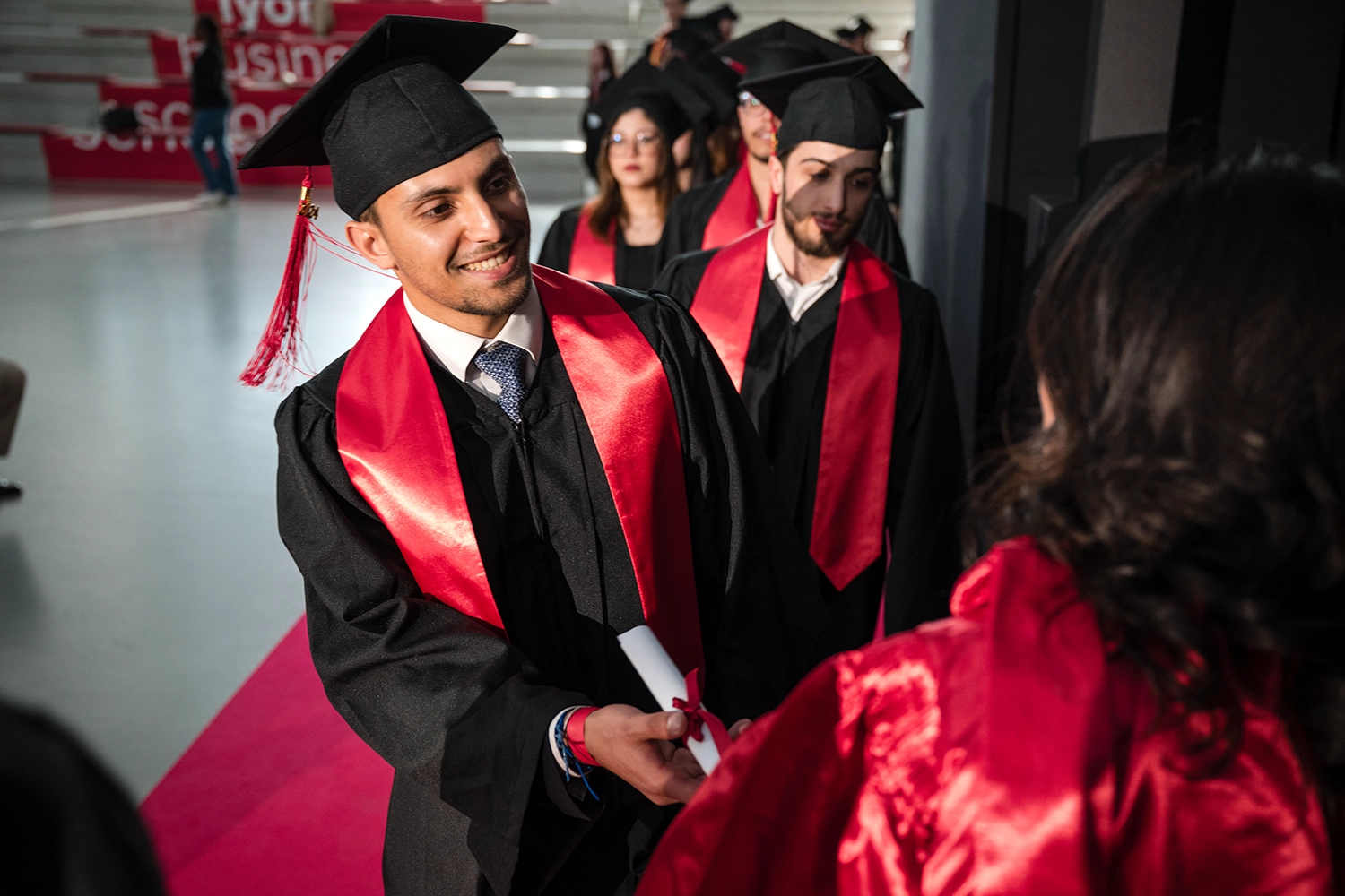 Temps fort et moment d’émotion pour les étudiants de la promotion 2024, la cérémonie de remise des diplômes d’EM Lyon s’est tenue en mars 2025 au sein même de l’école, à Lyon 7. Pour cette mission, j’ai rejoint une équipe de trois photographes afin d’assurer une couverture complète de la journée. Au programme : captation de la cérémonie officielle, animation des photocalls et réalisation de portraits individuels, de groupe et en famille pour chaque diplômé.